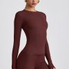 Ribbed Modal Crew Neck Top in Espresso