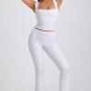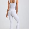 Ribbed Modal Mid-Rise Foldover Flared Trousers in Grey