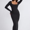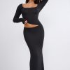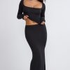 Ribbed Modal Mid Rise Maxi Skirt in Black