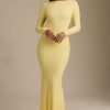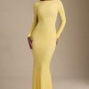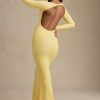 Dressed up elegance. Perfect for memorable daytime occasions that linger into the evening, the Tarini maxi dress is crafted from premium stretch lace with a figure-hugging 20D mesh and sheer jersey lining. It’s cut to a fishtail silhouette, elevated with sculpting ruching at the side, and framed with a minimalist round neck. The statement open back creates a high-impact look.