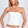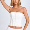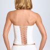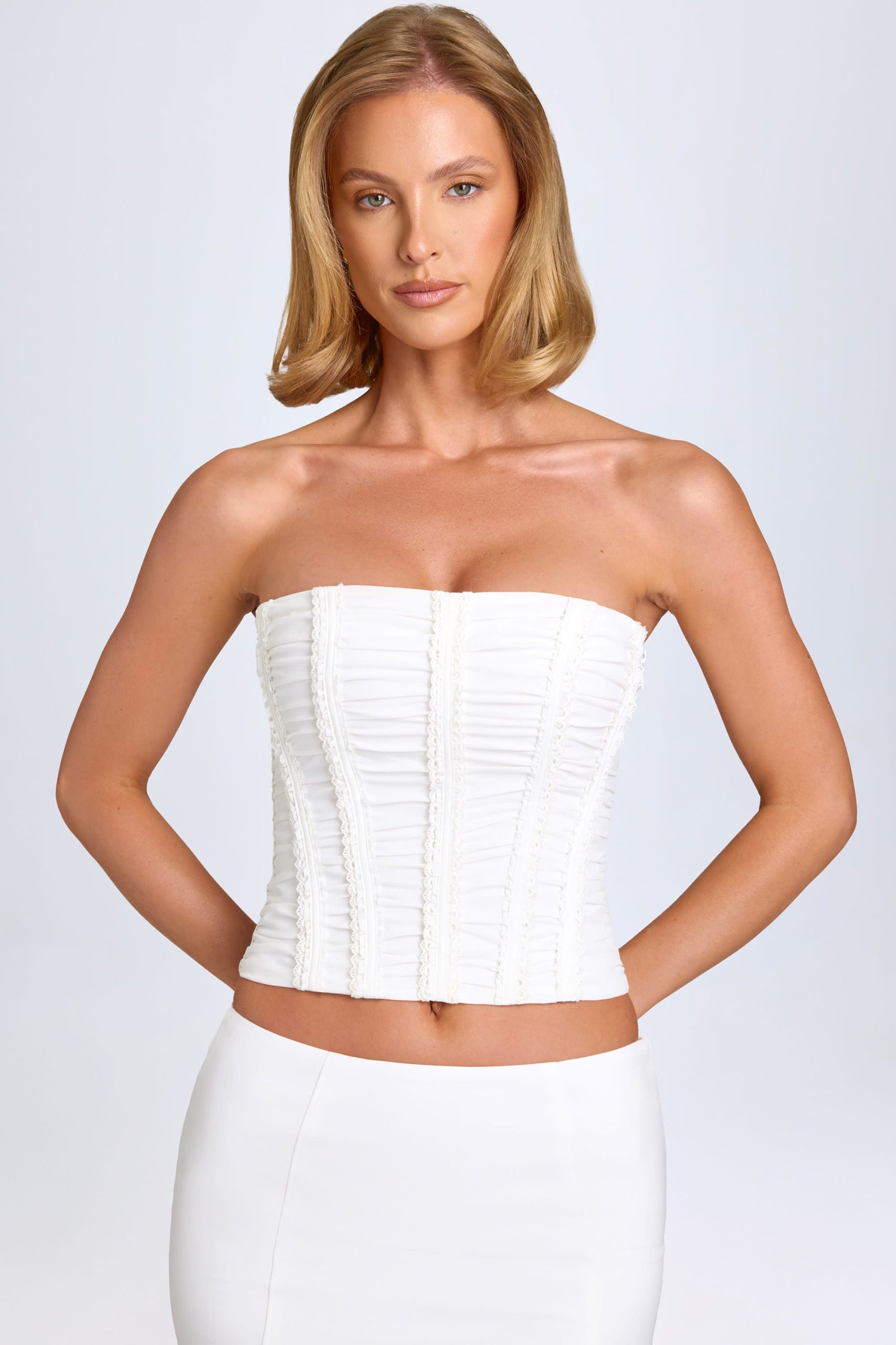 Designed to cinch and sculpt your figure, the Trova top is modelled on classic corsets, complete with all-over ruching and adjustable lace-up detailing at the back for your perfect fit. It’s cut from stretch georgette, enhanced with a built-in corset structure for a snug fit and framed with a bandeau neckline secured with internal silicone tape for extra hold. In keeping with the collection’s romantic inspiration, it’s traced with pretty frills and lace detailing along the seams.