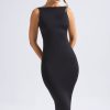 Minimalism at its finest. Perfect for day-to-night events, the Grainne midaxi dress is crafted from slinky stretch jersey to a bodycon silhouette with a universally flattering high boat neck. It’s enhanced with perfectly placed ruching at the waist, a sultry low back, and a center back split for ease of movement.