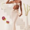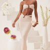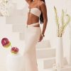 Endless summer evenings in Sylas. A slinky and sexy separate, the Sylas maxi skirt features a ruched waistband, high waist strap and statement hardware detailing at the front.