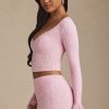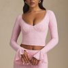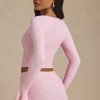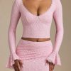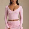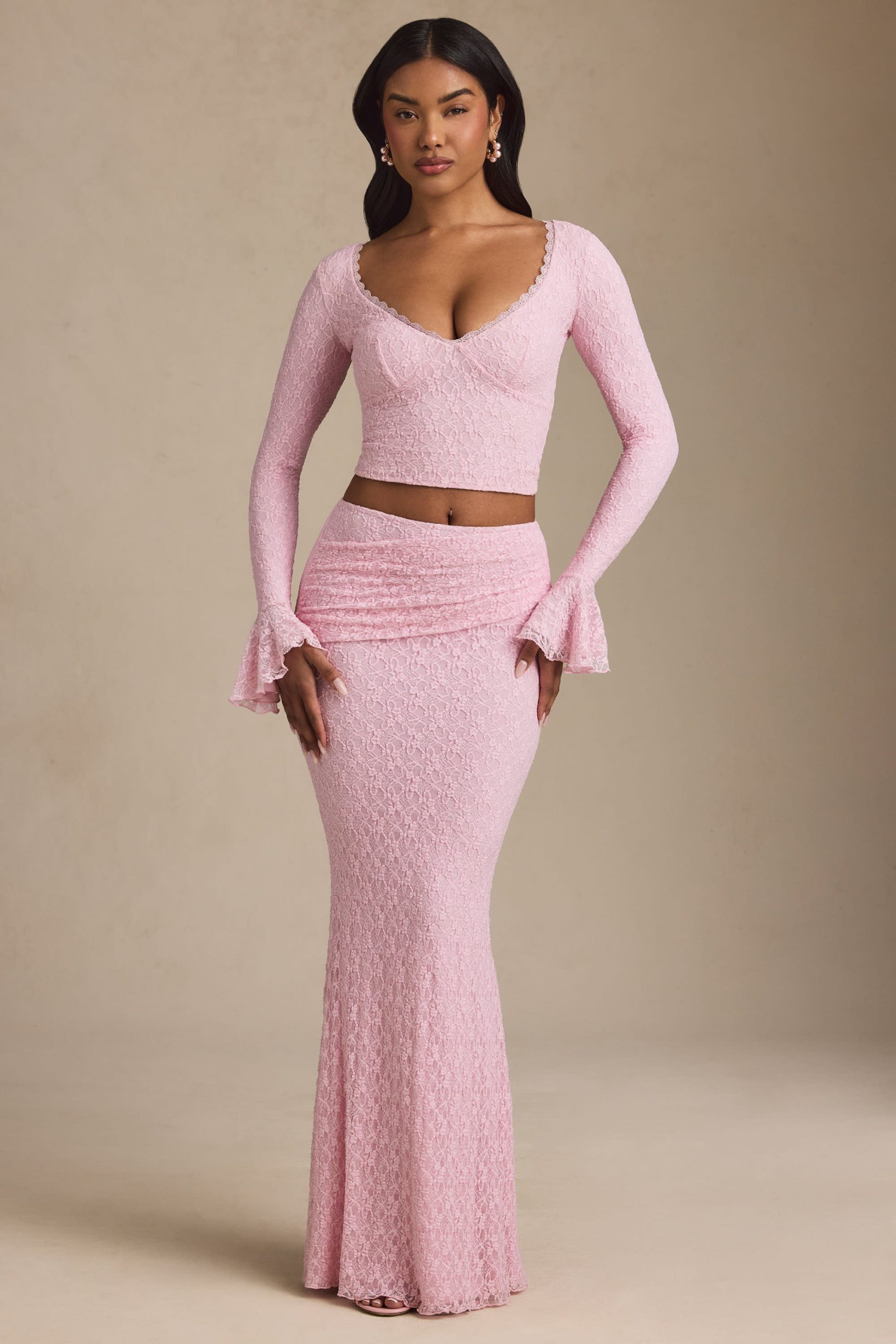 Ruffle Long-Sleeve Lace Top in Soft Pink