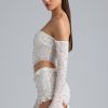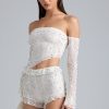 Ruffle Mid-Rise Hot Pant Shorts in Ivory