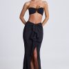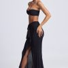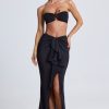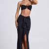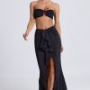 A new take on destination dressing. Inspired by the movement of gentle waves, the Ondine maxi skirt is cut to a fishtail silhouette and elevated with a cascading ruffle trim that creates a dynamic look. It’s crafted from lightweight plissé jersey, designed for a mid-rise fit with a universally flattering V-shaped waistband, and is punctuated with a thigh-high front split.