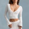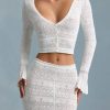 Subtly sheer and intricately textured, the Ylena cardigan is crafted from our premium pointelle-knit cotton fabric with a touch of stretch. Cropped to pair perfectly with the coordinating skirt or your favourite trousers, it’s designed for a bodycon fit juxtaposed with ruffle-trim cuffs.