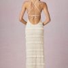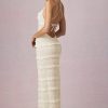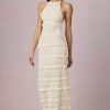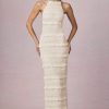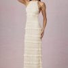Designed to turn heads, the Tove maxi dress is a seasonal staple for golden hour moments and garden parties. Crafted from premium textured stretch mesh with delicate ruffle detailing throughout, it’s cut to a halterneck silhouette and features a low open back with crossover tie straps for your perfect fit every time. It’s finished with a pretty ruffled hem that’s best balanced with delicate heels.