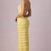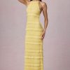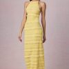 Designed to turn heads, the Tove maxi dress is a seasonal staple for golden hour moments and garden parties. Crafted from premium textured stretch mesh with delicate ruffle detailing throughout, it’s cut to a halterneck silhouette and features a low open back with crossover tie straps for your perfect fit every time. It’s finished with a pretty ruffled hem that’s best balanced with delicate heels.