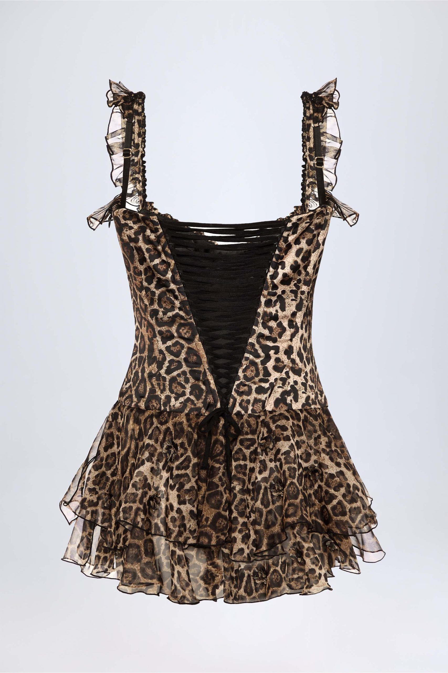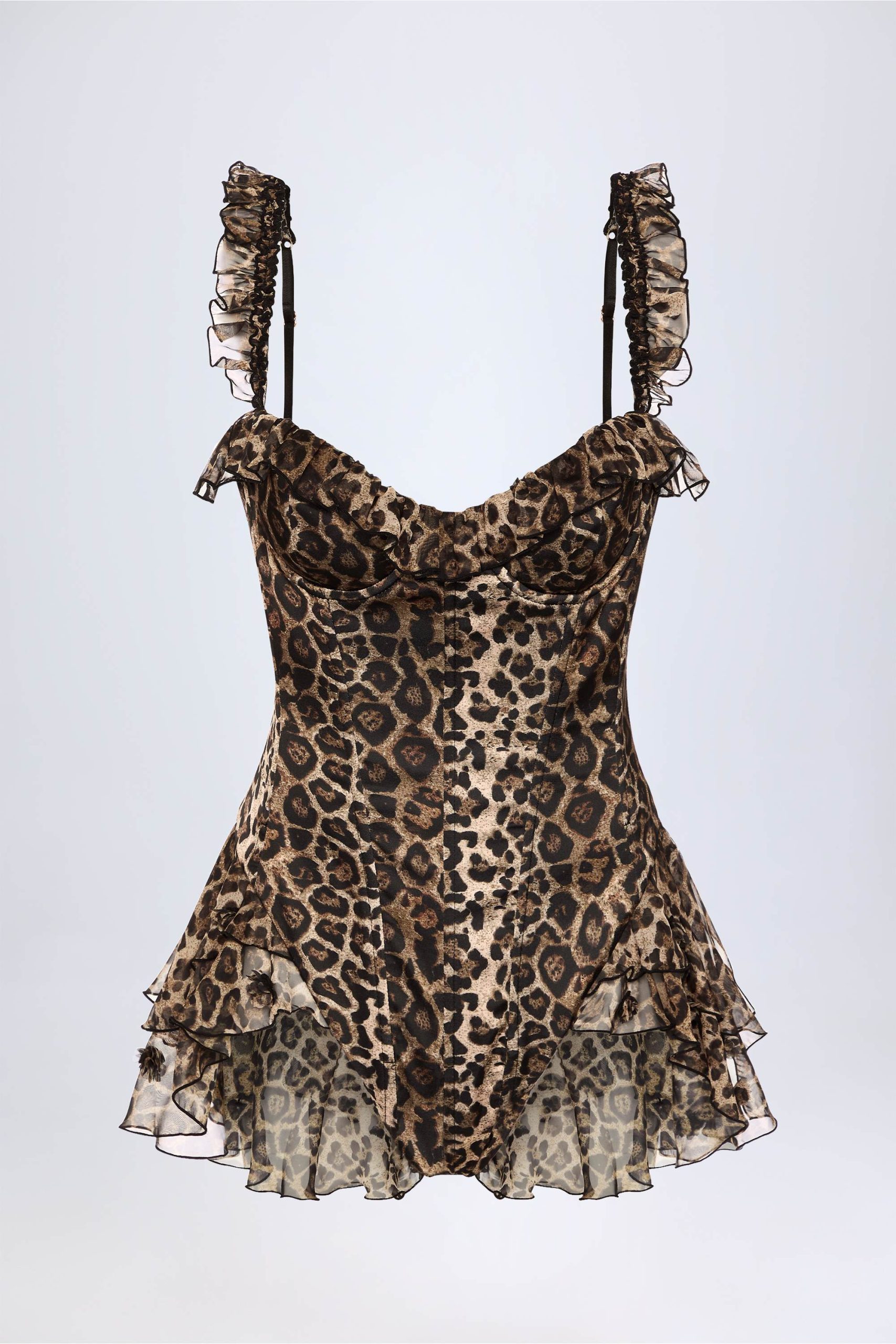 Made for the main event. Made for the main event. A statement styling piece, the Caelie bodysuit is crafted from lightweight satin with a boned corset bodice and moulded cups for the perfect amount of support. Framed with a sweetheart neckline, ruffled trims and adjustable shoulder straps, the bodycon silhouette is elevated with a layered chiffon overlay and V-shaped lace-up detailing at the back.
