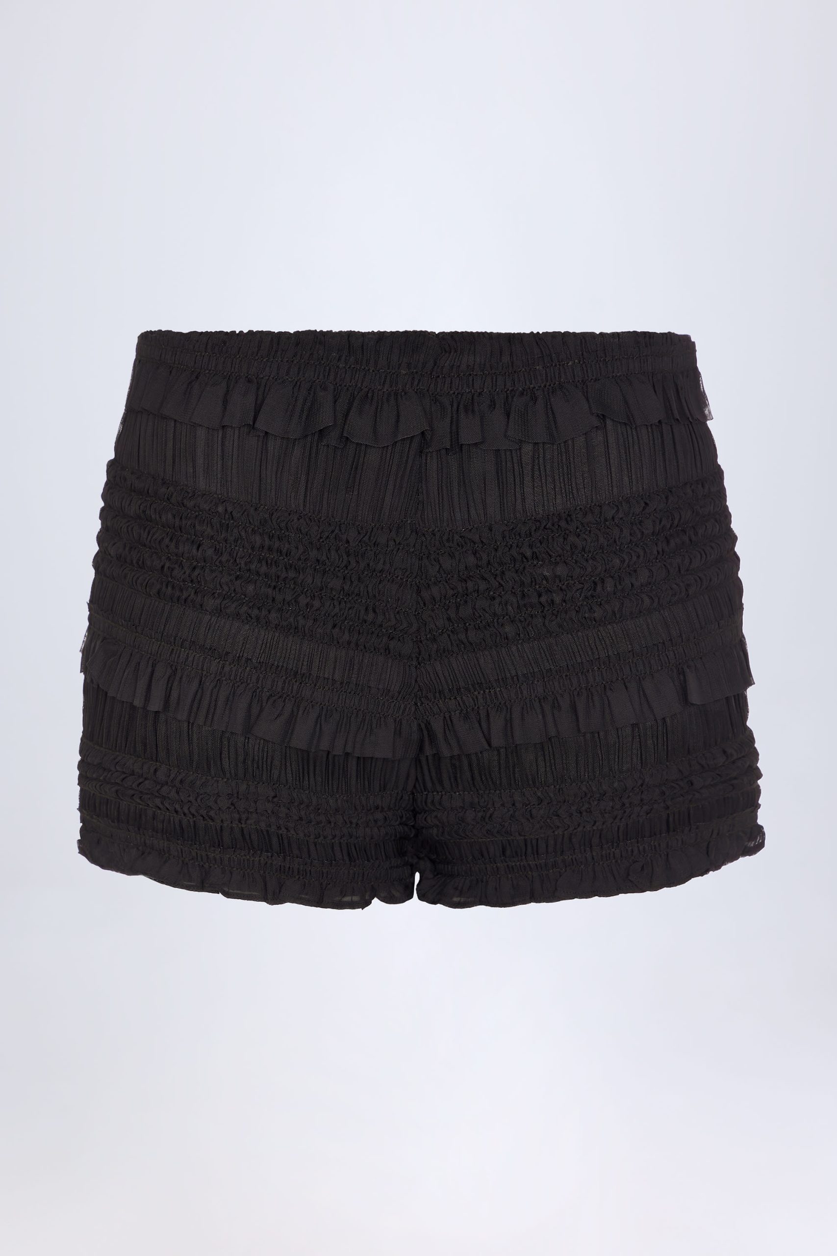 Playful separates. Inspired by cutesy bloomer styles, the Orla shorts are crafted from our custom-designed textured mesh, elevated with ruffle trims, and designed to be styled with the matching top for the perfect festival look. They’re cut for a mid-rise fit and feature a comfortable elasticated waistband.