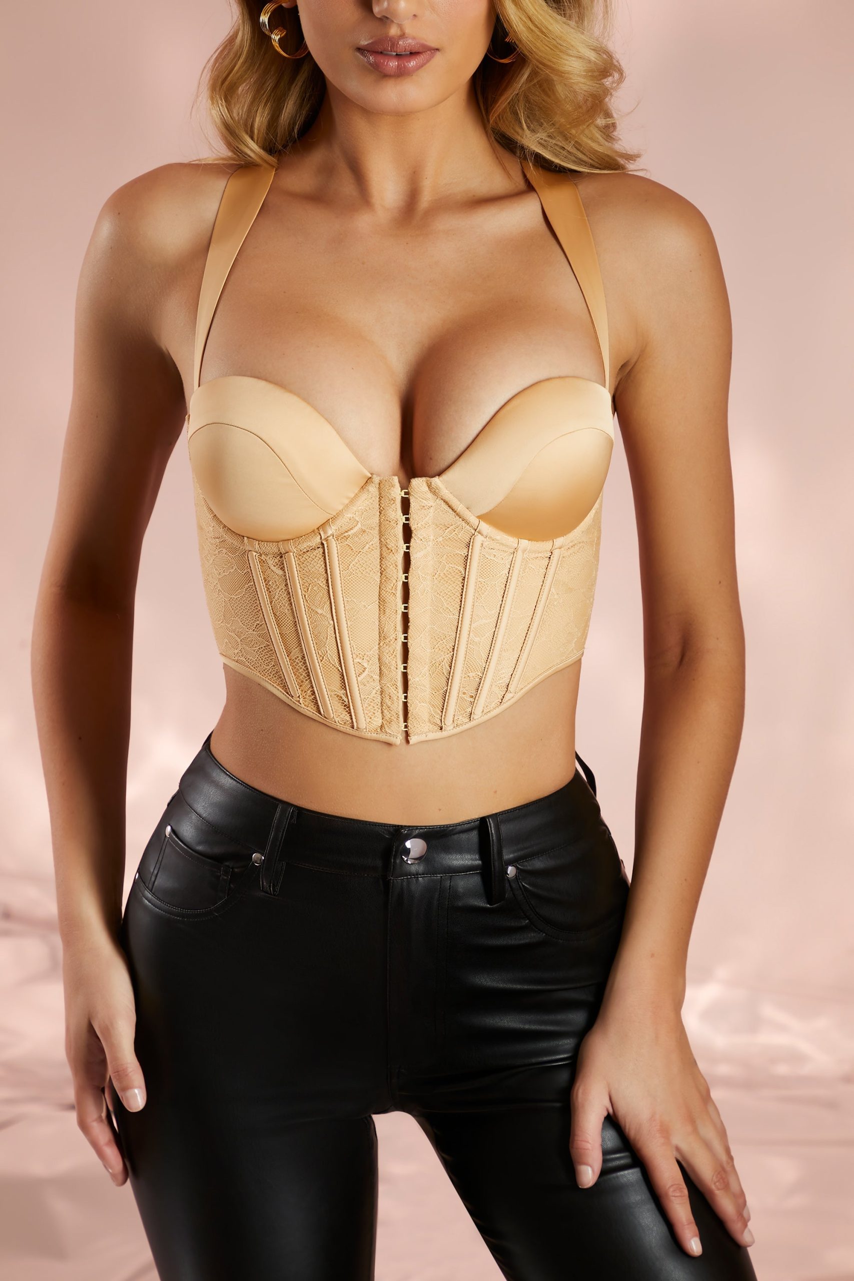 Super seductive and undeniably chic, our Adored corset crop top is designed in two alluring shades that are sure to get pulses racing. Cut from our sultry stretch satin fabric with glamorous lace overlay around the bodice, Adored features functional hook and eye clasps at the front of the crop top giving this statement corset an luxury boudoir edge. Our corset crop top features underwired and subtly padded cups that lift your cleavage, with wide tapered straps that cross at the back to elegantly frame the shoulders. With a bodice that features our waist cinching boning and a directional V shaped hem, Adored is designed to sculpt your figure. Complete the look with statement earrings, faux leather trousers and high heels for your next girls night out look. We know all eyes will be on you.