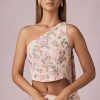 Scarf-Detail One-Shoulder Top in Primrose Floral Print