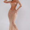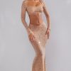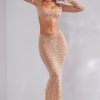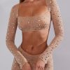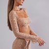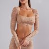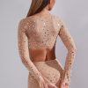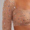 Nights to remember. Crafted from our premium stretch mesh fabric and fully adorned with delicate crystal hand embellishment throughout, Giulia is a sparkling crop top perfect for all-eyes-on-you moments. Complete with a square neckline and fully embellished, split flare long sleeves.