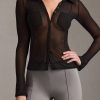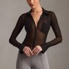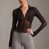Sheer minimalism. An elevated and versatile styling piece, the Yvaine shirt is crafted from premium semi-sheer mesh with a touch of stretch and cut to a figure-skimming fit. Traced with functional tonal buttons at the front for custom styling, it features contouring princess seams, a crisp collar and long sleeves with slightly flared cuffs.