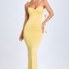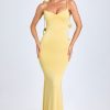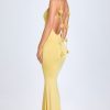 For nights you won’t want to forget. Crafted from our super soft and stretchy jersey fabric, the Aldona gown is cut to a figure-hugging fishtail silhouette framed with a sweetheart neckline and ruching at the bust. It features a statement low back and delicate trailing shoulder straps adorned with tonal rosettes.