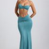 Slinky Jersey Hardware Detail Maxi Skirt in Sea Green
