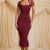 Classic silhouettes with a fresh twist. Designed in our premium, dual-layered mesh fabric that hugs every curve, the Milita dress is a signature style designed to capture attention. It’s cut to a midaxi length with a subtle flared hem, a bust-flattering halter neckline and features a cut-out back. The body-contouring seams accentuate your silhouette, while the semi-sheer mesh shrug is a playful finishing touch.