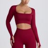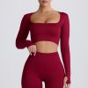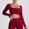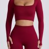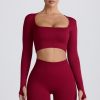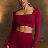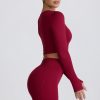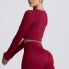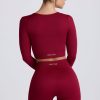 Super Sculpt Seamless Long-Sleeve Crop Top in Burgundy