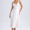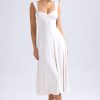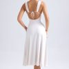 Summery silhouettes. Crafted from premium, lightweight slinky jersey, the Thandie midaxi dress is the perfect option for golden hour plans – think al fresco dinner dates or rooftop drinks. It’s cut to a breezy A-line silhouette with a full circle skirt, tempered by the fitted bodice and ruched sweetheart neckline. The curved cut-out at the back is anchored with adjustable ties and adds a statement touch.