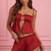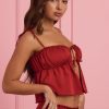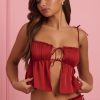 Inspired by classic babydoll styles, the Caramia camisole top is our elevated take on loungewear. Crafted from soft-touch, breathable and lightweight satin to an open-front silhouette with adjustable ties for your perfect fit every time. The scoop neck is traced with a pretty frilled trim and it features self-tie rouleau shoulder straps, so you can adjust the support. Pair it with the Cinta shorts for a coordinated look.