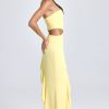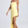 Signature silhouettes with a whimsical twist. Designed for head-turning entrances, the Acelynn maxi dress is crafted from lightweight georgette that skims your curves to an asymmetric silhouette with a built-in corset. It’s traced with a cascading ruffle trim to one side and punctuated with a striking waist cut-out at the other. The bandeau neckline is secured with internal silicone taping for enhanced hold.