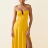 Sweet and sultry. Our take on a classic style, the Joely midaxi dress is crafted from buttery soft and stretchy slinky jersey to a floaty A-line silhouette framed with a structured plunging sweetheart neckline. It’s free from straps, anchored with internal silicone tape for enhanced hold, and complete with a thigh-high side split.