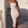 Leave a lasting impression in Nasrin. Designed for sunset moments and summertime events, the Nasrin midi dress features a bandeau neckline, bodycon fit and a leg-lengthening asymmetric hemline adorned with ruffle detailing.