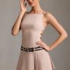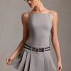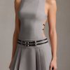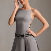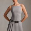 A masterclass in contrasts, the Leilani mini dress is tailored from our sculpting and slightly stretchy suiting fabric, lined with stretch satin for a luxe feel, and cut to a sharp boat-neck silhouette with a fitted bodice and box-pleat mini skirt. It’s elevated with a statement open back featuring adjustable slender belt straps that coordinate with the double belt detailing at the front.