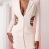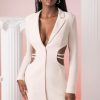Sexy, statement dressing just got a whole lot easier with our Kardia long sleeve blazer dress. Cut from our luxurious stretch suiting fabric, Kardia features a wide collar and lightly padded shoulders that creates the perfect tailored shape. Back panelling and front seams structure your silhouette whilst the cut out sides are accentuated with a narrow double belt that crosses at the back. Perfect for your next evening event, pair with our Stroke of Luck lace up heels to complete the look.