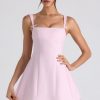 Sweet silhouettes. The perfect complement to summer plans, the Bronwyn mini dress is crafted from a lightweight woven fabric that sculpts to your curves. Elevated with shaping princess seams, it’s cut to a universally flattering A-line silhouette with a fitted bodice and underlaid with a contrasting pleated georgette skirt. The dual adjustable camisole straps are complete with pretty bow embellishments at the front.