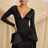 All eyes on you. Made for special occasions and festive parties, the Karelyn mini dress is crafted from premium satin jersey with a touch of stretch to a figure-hugging bodycon silhouette elevated with ruched detailing at the skirt. It’s framed with a plunging V-neckline and topped with an oversized fixed bow at each side, perfect for making a statement.
