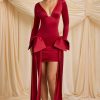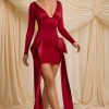 All eyes on you. Made for special occasions and festive parties, the Karelyn mini dress is crafted from premium satin jersey with a touch of stretch to a figure-hugging bodycon silhouette elevated with ruched detailing at the skirt. It’s framed with a plunging V-neckline and topped with an oversized fixed bow at each side, perfect for making a statement.