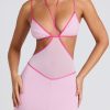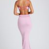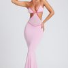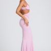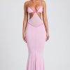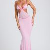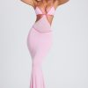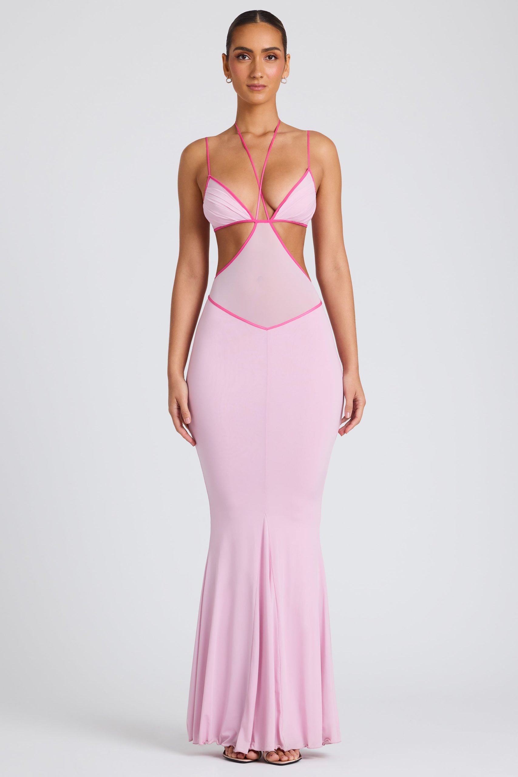 Contrast Binding Cut Out Evening Gown in Soft Pink