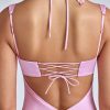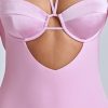 Sultry and seductive. The Mirabel is imagined in two shades, perfect for the season of love. Crafted from our premium georgette fabric with an exposed satin bralette, it features a dramatic cowl neck juxtaposed with delicate halterneck fastenings and moulded cups. It’s complete with a thigh-skimming A-line skirt and cut-outs at the back.