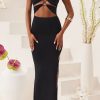Seductive evenings in Oceane. Designed in our slinky jersey fabric, this curve-hugging maxi dress design features statement cut-outs at the waist and bust with delicate lace up detailing.