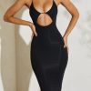 Cut Out Halter Neck Midi Dress in Black