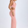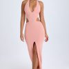 Cut-Out Halterneck Maxi Dress in Apricot Pink