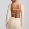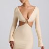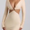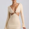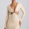 Striking silhouettes that leave a lasting impression. A stretchy and sculpting design that’s perfect for evening events, the Wyetta mini dress is made from our premium jersey fabric and spliced with graphic cut-outs at the front and back. It’s adorned with custom-developed metal hardware at the plunging neckline and framed by long sleeves with split cuffs.