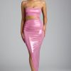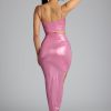 Draped Metallic Jersey Maxi Dress in Rose Pink