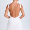 Designed to give the illusion of sleek separates, the Shirin mini dress is crafted from figure-hugging slinky jersey with a built-in bodysuit for enhanced support and coverage. Framed with a high neckline, it’s elevated with a draped skirt that falls slightly longer at the sides and turns to reveal a low scoop back, ideal for making a statement on balmy summer evenings.
