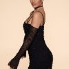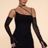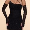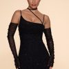 Embellished Asymmetric Corset Mini Dress in Black