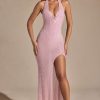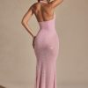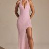Bold silhouettes. A perfect party piece, the Ianthe gown is crafted from premium 20D stretch mesh to a halterneck silhouette with a semi-sheer skirt and is underlaid with a sculpting bodysuit for enhanced coverage. It features a supportive built-in corset, a thigh-high leg split and is embellished with custom-developed square sequins and beads for extra sparkle.