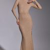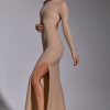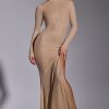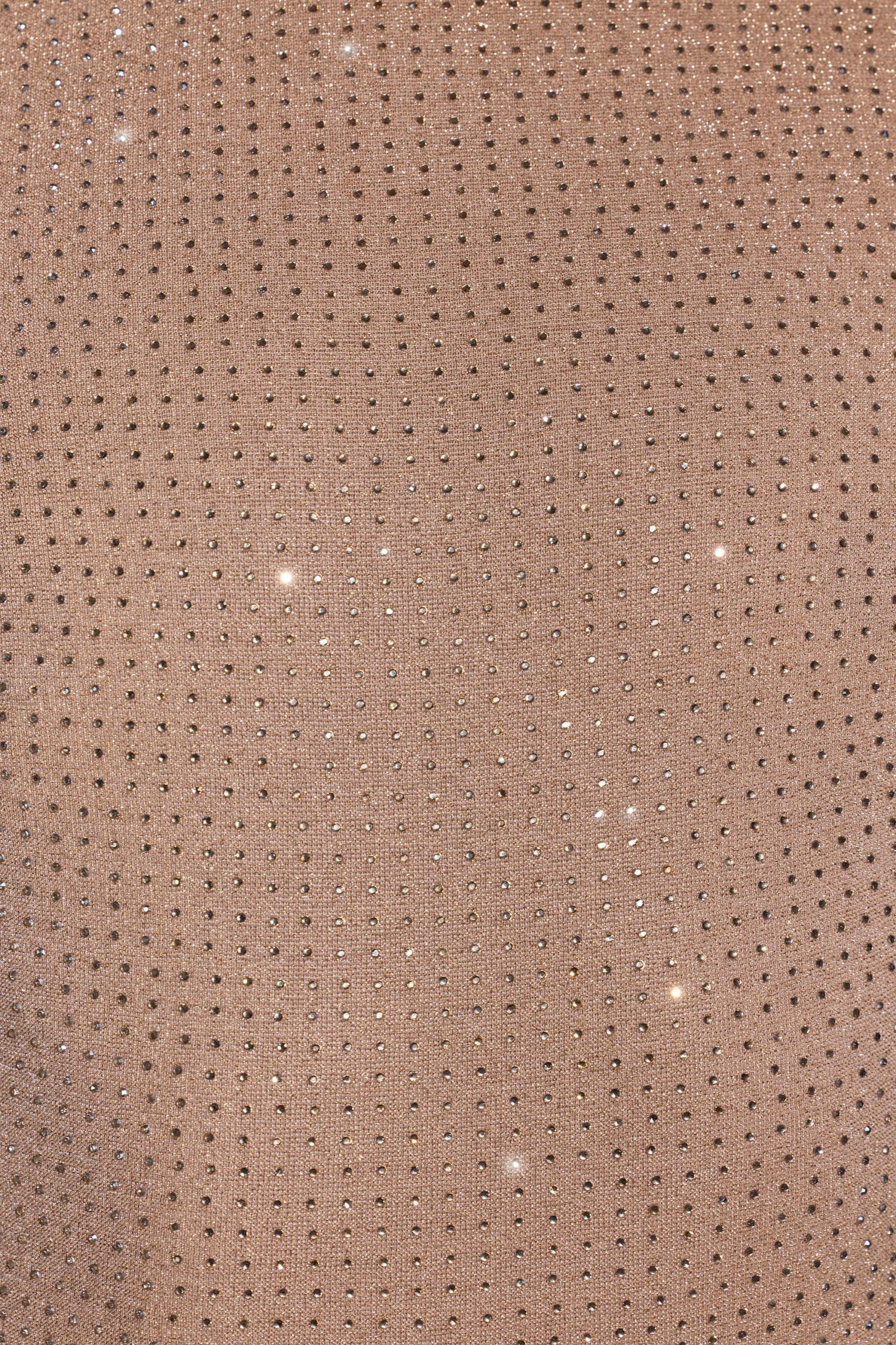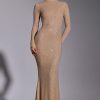 Memorable moments call for statement eveningwear. Cut from our new stretch jersey fabric with woven metallic yarn, the Celestia maxi dress features all-over hotfix embellishment to ensure unbelievable sparkle. This sultry gown is sure to steal the spotlight with its high neckline, full-length fitted sleeves, fishtail hem, and dramatic back cut-out.