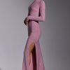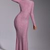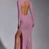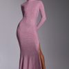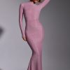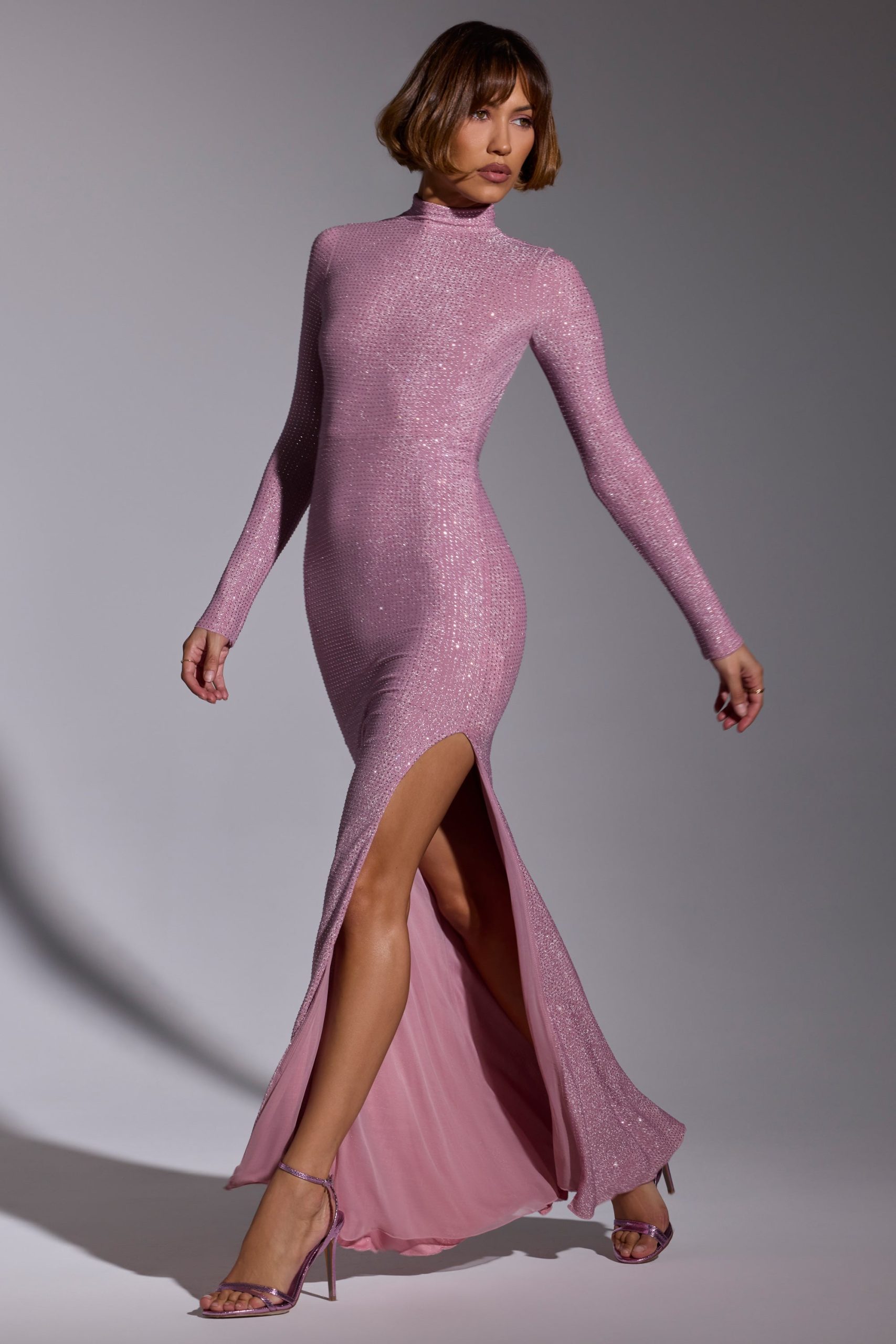 Memorable moments call for statement eveningwear. Cut from our new stretch jersey fabric with woven metallic yarn, the Celestia maxi dress features all-over hotfix embellishment to ensure unbelievable sparkle. This sultry gown is sure to steal the spotlight with its high neckline, full-length fitted sleeves, fishtail hem, and dramatic back cut-out.