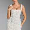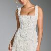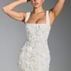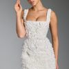 Florals that endure. Inspired by classic corsetry and couture-led elements, the Posy mini dress is an ethereal design, perfect for cocktail parties and evening events. It’s crafted from satin with a tulle overlay and adorned with hand-applied floral appliqués that create a stunning three-dimensional look. Cut to a micro length, it features an internal boned corset for enhanced support and turns to reveal lace-up detailing at the back.
