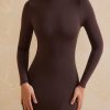 Designed in our premium modal fabric with body sculpting technology, the Bindi mini dress is a staple design for showcasing your silhouette. Cut to a mini length with a bodycon fit, Bindi features a high neck and long sleeves for an elegant finish. The bodycon skirt is accentuated with a narrow split that adds allure to this seductive minimalist design.