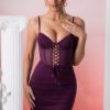 This dress deserves a night out. Eirene is made in jersey with a mesh overlay and ruched mini skirt for that something extra. It’s complete with a lace up bodice, built in corset and underwired, lightly padded cups.Style yours with heeled mules and statement-making earrings.