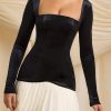 Festive and fancy, the Darline mini dress is designed with a drop-waist bodice for enhanced shaping and features a contrasting pleated georgette skirt. It’s cut from plush stretch velvet with a premium power mesh lining for a comfortable fit and is framed with a classic, universally flattering square neckline.