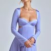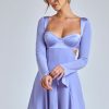 Designed in two statement shades, the Leotine mini dress is perfect for creating a memorable date night look. It’s crafted from our premium georgette fabric with satin underwired cups that provide elevated support. Capturing the allure of the season, it’s complete with an A-line skirt enhanced with playful godet pleats.